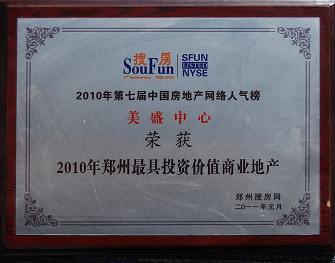 美盛中心-2010年鄭州最具投資價值商業地產 -