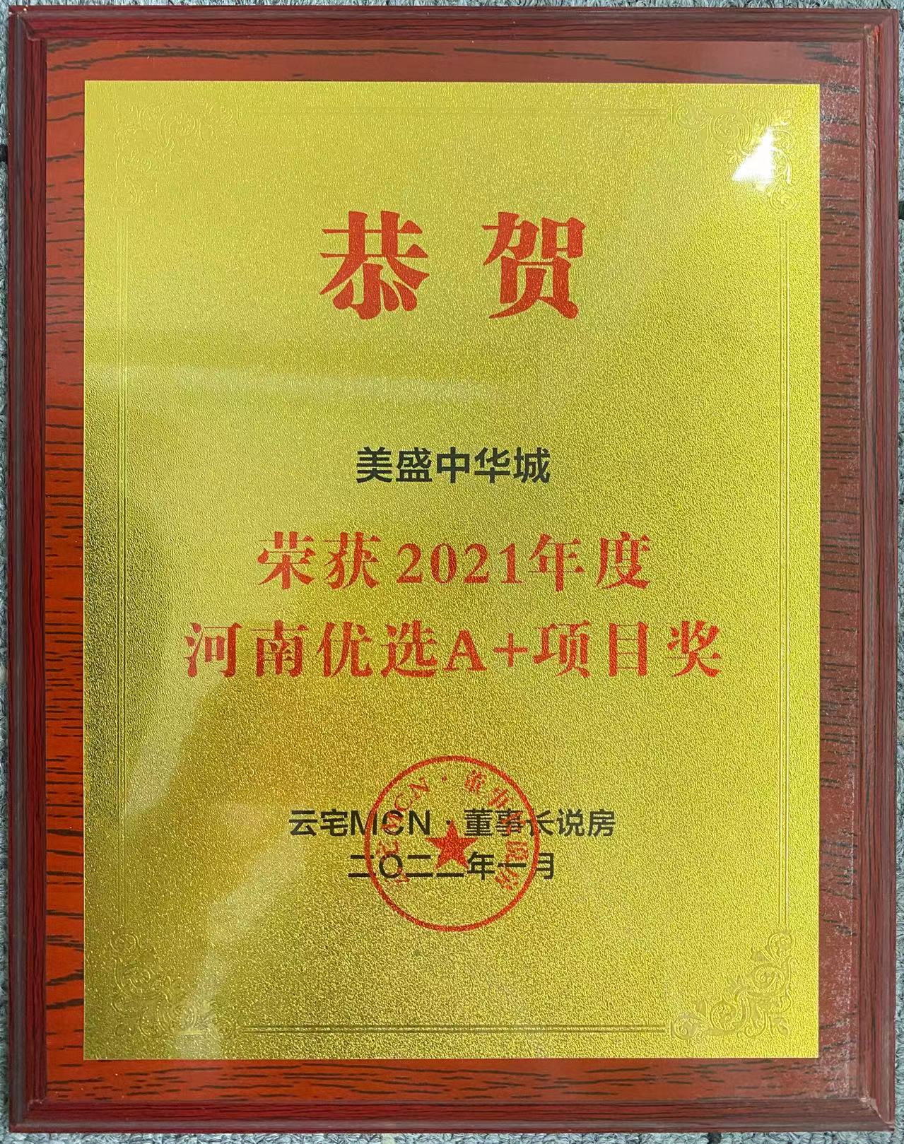 2021年度河南優選A+項目獎 美盛·中華城 -