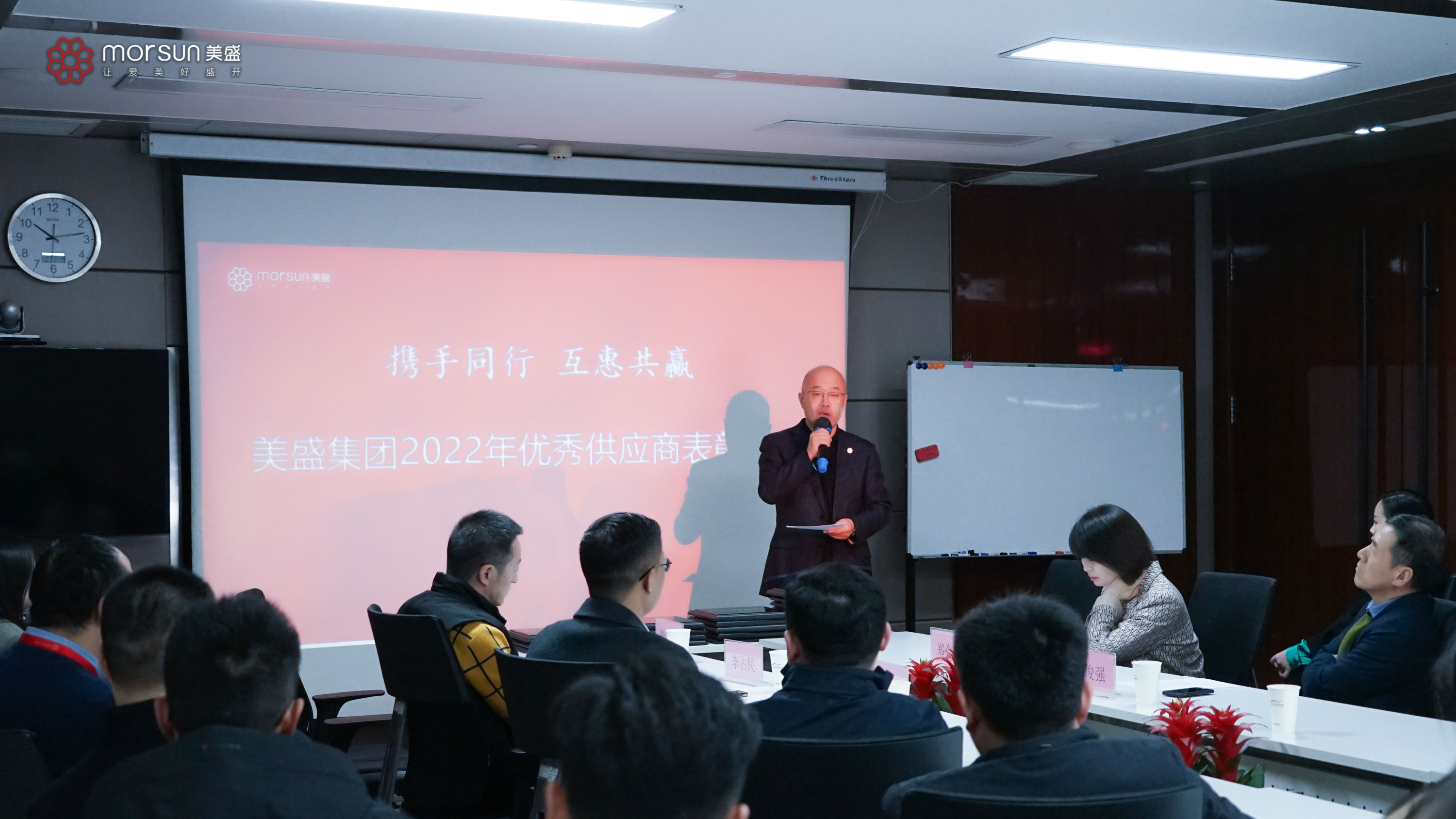 2023年2月17日,美盛集團2022年優(yōu)秀供應商表彰大會在美盛中心隆重舉行,美盛集團總裁徐邁、副總裁李占民、助理總裁兼營銷管理中心總經(jīng)理鄭會莉、合約管理部總經(jīng)理趙俊強、工程管理部總經(jīng)理肖強及各優(yōu)秀供應商代表出席。