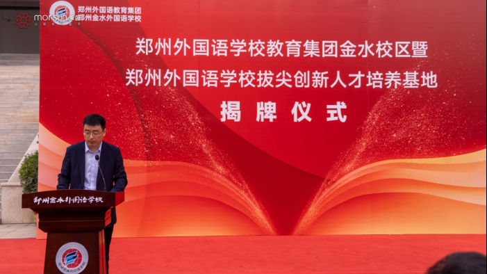 2023年4月20日上午,鄭州外國語學(xué)校教育集團金水校區(qū)暨鄭州金水外國語學(xué)校拔尖創(chuàng)新人才培養(yǎng)基地揭牌儀式在鄭州金水外國語學(xué)校舉行。