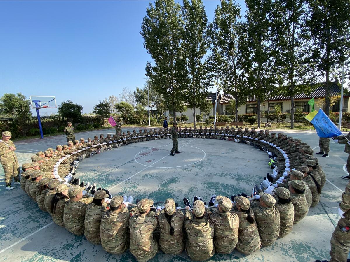 進行隊形隊列等軍事科目訓(xùn)練的同時還開展了摸石過河、百發(fā)百中、挑戰(zhàn)150等訓(xùn)練項目。雖然在150秒內(nèi)有隊伍沒有完成全部項目,但是大家都沒有放棄,一個項目一個項目地攻克,直至完成所有項目。