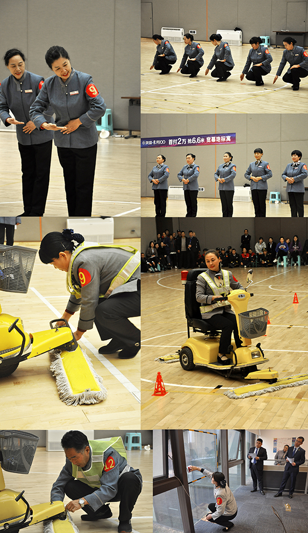 窗明幾凈是衡量清潔服務(wù)最基礎(chǔ)的一項(xiàng)標(biāo)準(zhǔn),在后期項(xiàng)目清潔服務(wù)工作中,窗戶清潔工作量大、這要求操作者要具備過硬的技能,靈活、安全的運(yùn)用玻璃器來清潔窗戶,安全、高效的解決高空公區(qū)玻璃清潔問題。看我們參賽的各代表隊(duì)清潔能手,玻璃器在他們手中輕松滑動,猶如書法家的揮墨潑毫,一氣呵成,沒有絲毫的停頓,眼前的窗戶玻璃一塵不染,透過冬日的陽光,折射出不同的光彩。