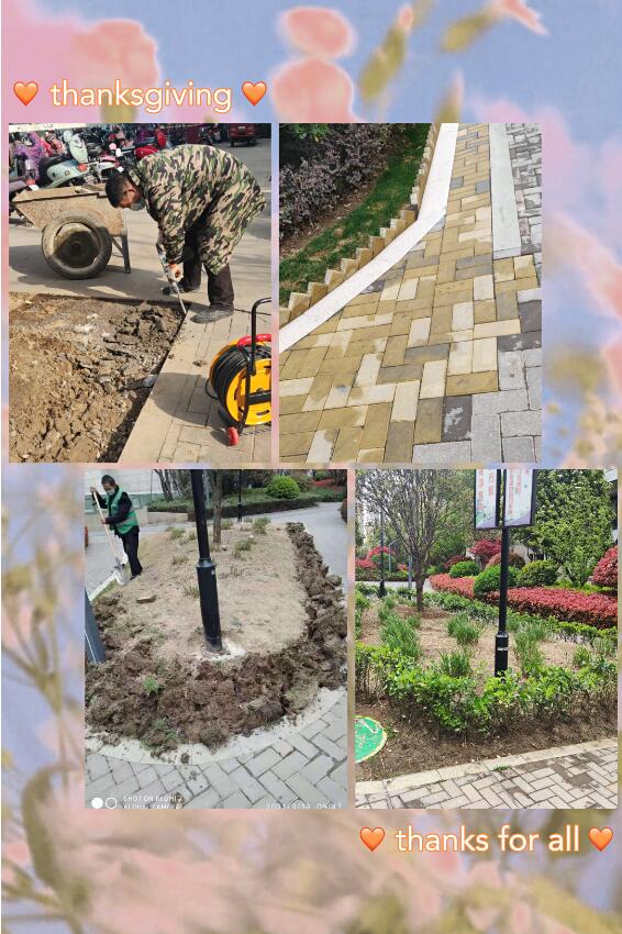 徐莊社區(qū)、廟李家園,一份安寧與清新,守護這份寧靜,項目全員進行綠化返青工作,雜草清理、利用廢棄材料進行綠化圍擋….