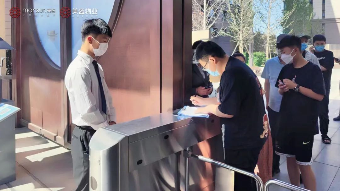 同時(shí),為了保障每一位美盛業(yè)主的安全,美盛集團(tuán)旗下各項(xiàng)目物業(yè)秩序部同事,同樣堅(jiān)守在平凡崗位之上。進(jìn)入小區(qū)所有人員均需佩戴口罩,查看健康碼與行程碼,測量體溫,確保所有進(jìn)入小區(qū)的人員和車輛都在管控范圍內(nèi),做好門崗陣地第一道防控。